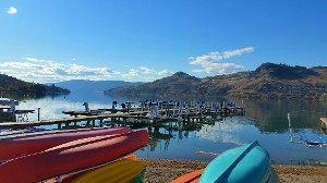 The property features not only a large private Kalamalka fronting beach but only includes private boat docks, a clubhouse, pool, and hot tub.